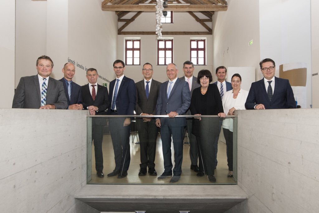 IBK Treffen: von links: RR Alfred Stricker AR, Landrat Elmar Stegmann, Lindau, RR Ernst Stocker ZH, Landeshauptmann Markus Wallner, Voralberg, RR Roland Inauen AI, Regierungschef Adrian Hasler FL (Vorsitz), RR Christian Amsler SH, Staatsrätin Gisela Erler BW, Jürgen Brücker, Rektor Uni Liechtenstein, RR Carmen Haag TG, RR Benedikt Würth SG