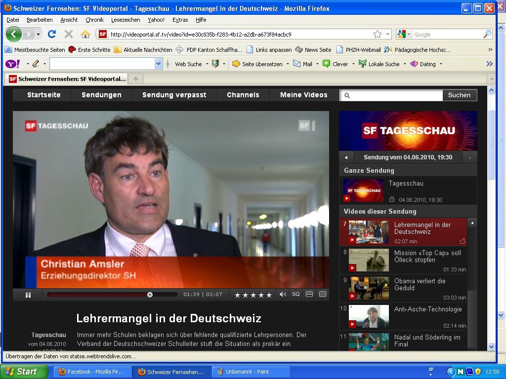 In der Hauptausgabe der Schweizer Tagesschau äussert sich der Schaffhauser Erziehungsdirektor zum Lehrermangel in der Schweiz.