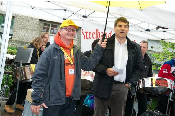 Begrüssung durch Stuart Goodman Eröffnung zum 4. Welt-Lachtag am Rheinfall (Benefiz-Veranstaltung) |