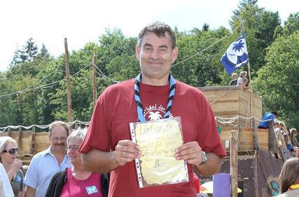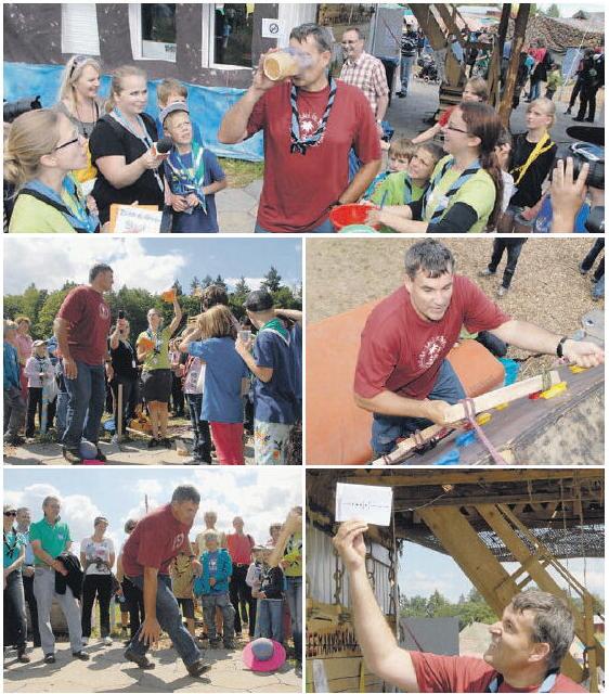 Am Nachmittag musste sich der Lagergötti einigen anstrengenden und schwierigen Aufgaben stellen, um offiziell in die Pfadi aufgenommen zu werden. Auch seinen Pfadinamen musste er verdienen in dem er einen ekligen Tauftrank trinken musste. Zum Glück hatte er sich den Publikumsjoker aufbewahrt, so konnten ihm die umstehenden Pfadis beim Entziffern des gemorsten Pfadinamens helfen und ihm wurde die Taufurkunde überreicht. Herzliche Gratulation Christian Amsler v/o Beo!
