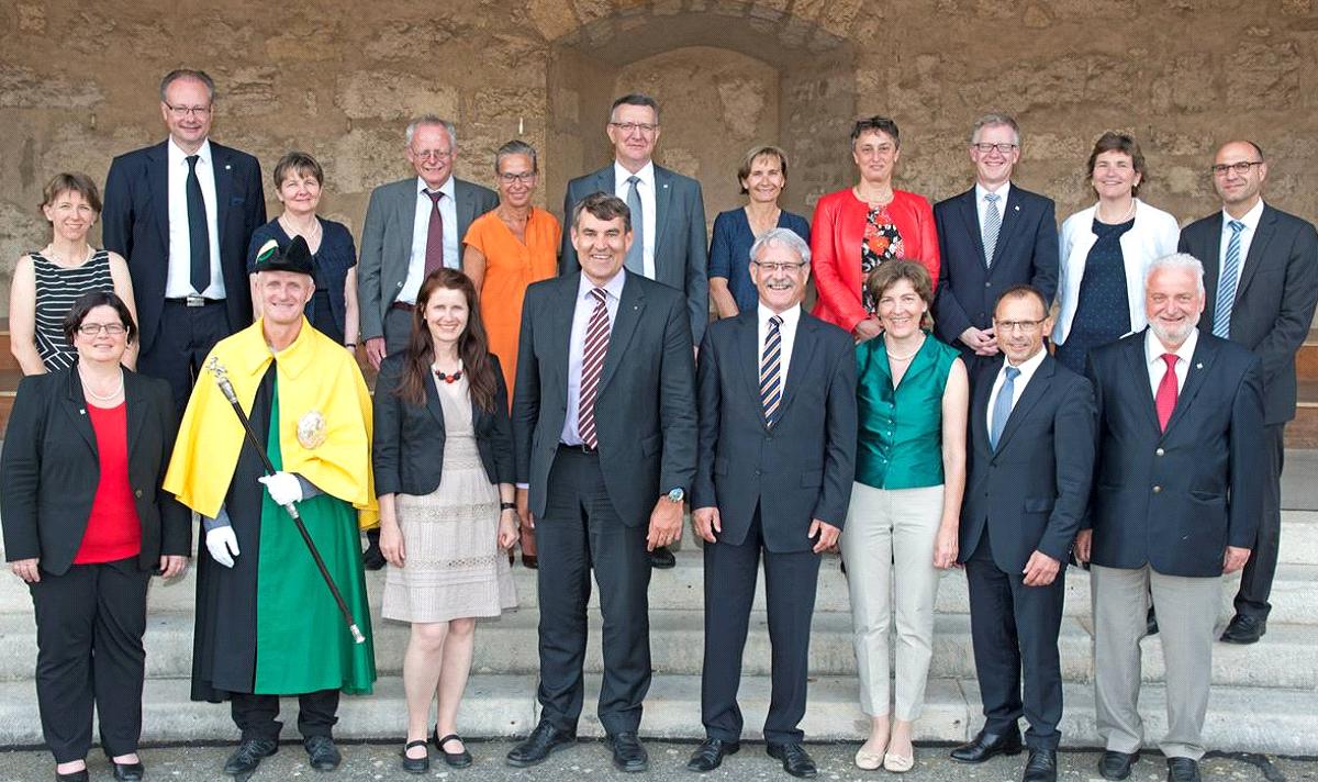 Regierung des Kantons Freiburg zu Gast in Schaffhausen - Der Schaffhauser Regierungsrat die Regierung des Kantons Freiburg zu einem offiziellen Besuch empfangen. Neben einem allgemeinen Gedankenaustausch standen ein Spaziergang durch die Schaffhauser Altstadt, eine Munotführung, ein Besuch der Blockflötenmanufaktur Küng sowie eine Bootsfahrt im Rheinfallbecken und auf dem Rhein auf dem Programm. Den Abschluss bildete ein gemeinsames Essen im Bad Osterfingen. Die regelmässigen Kontakte über die Kantonsgrenzen hinweg leisten einen wertvollen Beitrag zur Erhaltung der föderalistischen Strukturen in der Schweiz. Sie tragen wesentlich zum besseren gegenseitigen Verständnis der kantonalen Standpunkte bei.